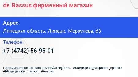 de Bassus, фирменный магазин по адресу Липецкая область, Липецк, Меркулова, 63 в дальнейшем Организация, размещена в следующих категориях: