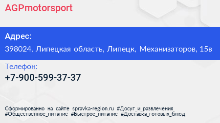 AGPmotorsport по адресу 398024, Липецкая область, Липецк, Механизаторов, 15в в дальнейшем Организация, размещена в следующих категориях:
