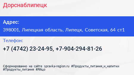 Дорснаблипецк по адресу 398001, Липецкая область, Липецк, Советская, 64 ст1 в дальнейшем Организация, размещена в следующих категориях: