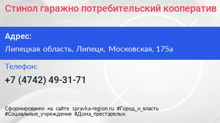 Стинол, гаражно-потребительский кооператив по адресу Липецкая область, Липецк, Московская, 175а в дальнейшем Организация, размещена в следующих категориях: