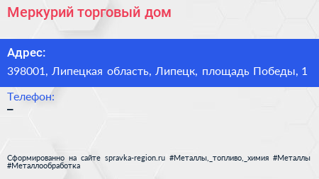 Меркурий, торговый дом по адресу 398001, Липецкая область, Липецк, площадь Победы, 1 в дальнейшем Организация, размещена в следующих категориях: