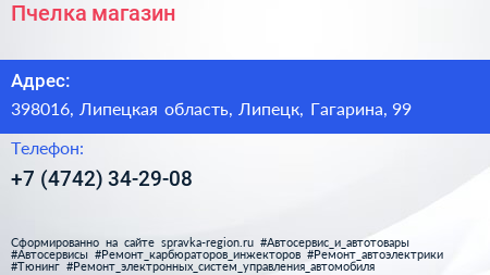 Пчелка, магазин по адресу 398016, Липецкая область, Липецк, Гагарина, 99 в дальнейшем Организация, размещена в следующих категориях: