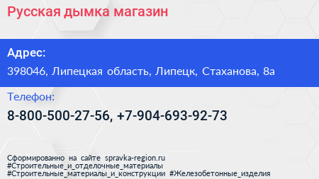 Русская дымка, магазин по адресу 398046, Липецкая область, Липецк, Стаханова, 8а в дальнейшем Организация, размещена в следующих категориях: