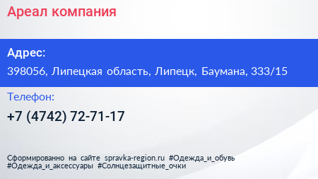 Ареал, компания по адресу 398056, Липецкая область, Липецк, Баумана, 333/15 в дальнейшем Организация, размещена в следующих категориях: