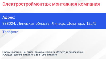 Электростроймонтаж, монтажная компания по адресу 398024, Липецкая область, Липецк, Доватора, 12а/1 в дальнейшем Организация, размещена в следующих категориях: