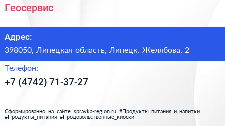 Геосервис по адресу 398050, Липецкая область, Липецк, Желябова, 2 в дальнейшем Организация, размещена в следующих категориях: