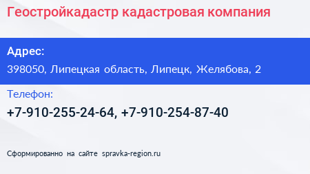 Геостройкадастр, кадастровая компания по адресу 398050, Липецкая область, Липецк, Желябова, 2 в дальнейшем Организация, размещена в следующих категориях:
