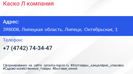Каско-Л, компания по адресу 398008, Липецкая область, Липецк, Октябрьская, 1 в дальнейшем Организация, размещена в следующих категориях:
