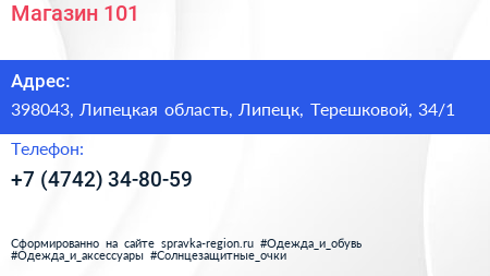 Магазин №101 по адресу 398043, Липецкая область, Липецк, Терешковой, 34/1 в дальнейшем Организация, размещена в следующих категориях:
