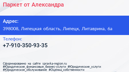 Паркет от Александра по адресу 398008, Липецкая область, Липецк, Литаврина, 6а в дальнейшем Организация, размещена в следующих категориях: