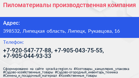 Пиломатериалы, производственная компания по адресу 398532, Липецкая область, Липецк, Рукавцова, 16 в дальнейшем Организация, размещена в следующих категориях:
