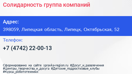 Солидарность, группа компаний по адресу 398059, Липецкая область, Липецк, Октябрьская, 52 в дальнейшем Организация, размещена в следующих категориях: