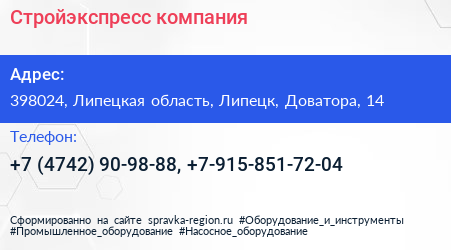 Стройэкспресс, компания по адресу 398024, Липецкая область, Липецк, Доватора, 14 в дальнейшем Организация, размещена в следующих категориях: