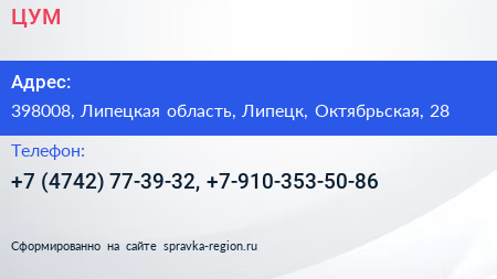 ЦУМ по адресу 398008, Липецкая область, Липецк, Октябрьская, 28 в дальнейшем Организация, размещена в следующих категориях: