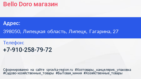 Bello Doro, магазин по адресу 398050, Липецкая область, Липецк, Гагарина, 27 в дальнейшем Организация, размещена в следующих категориях:
