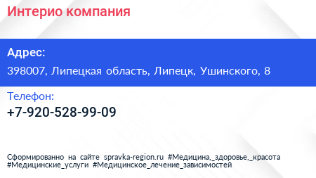 Интерио, компания по адресу 398007, Липецкая область, Липецк, Ушинского, 8 в дальнейшем Организация, размещена в следующих категориях: