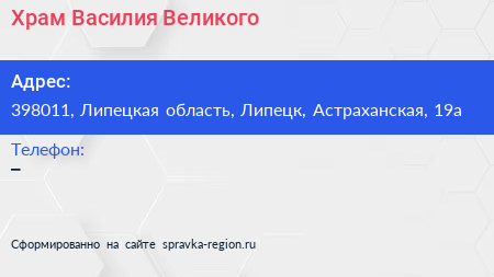 Храм Василия Великого по адресу 398011, Липецкая область, Липецк, Астраханская, 19а в дальнейшем Организация, размещена в следующих категориях: