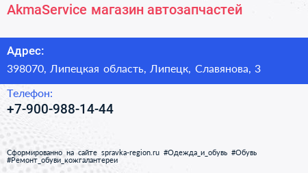 AkmaService, магазин автозапчастей по адресу 398070, Липецкая область, Липецк, Славянова, 3 в дальнейшем Организация, размещена в следующих категориях: