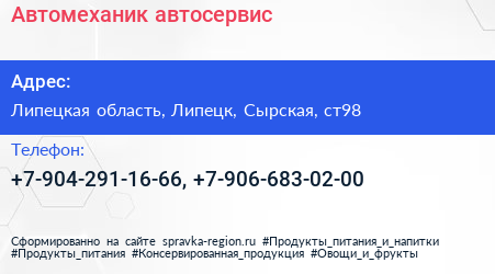 Автомеханик, автосервис по адресу Липецкая область, Липецк, Сырская, ст98 в дальнейшем Организация, размещена в следующих категориях: