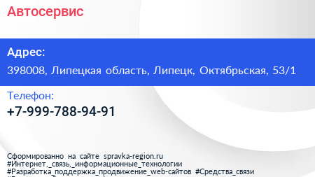 Автосервис по адресу 398008, Липецкая область, Липецк, Октябрьская, 53/1 в дальнейшем Организация, размещена в следующих категориях: