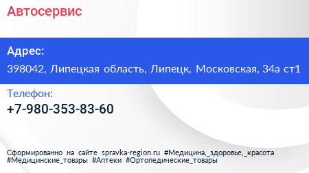 Автосервис по адресу 398042, Липецкая область, Липецк, Московская, 34а ст1 в дальнейшем Организация, размещена в следующих категориях: