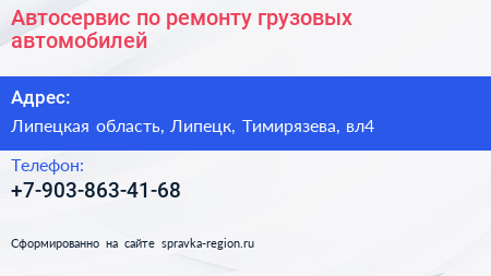 Автосервис по ремонту грузовых автомобилей по адресу Липецкая область, Липецк, Тимирязева, вл4 в дальнейшем Организация, размещена в следующих категориях: