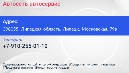 Автосеть, автосервис по адресу 398055, Липецкая область, Липецк, Московская, 79в в дальнейшем Организация, размещена в следующих категориях: