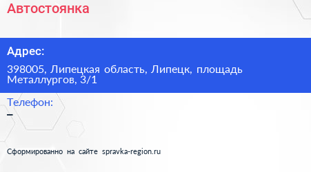 Автостоянка по адресу 398005, Липецкая область, Липецк, площадь Металлургов, 3/1 в дальнейшем Организация, размещена в следующих категориях: