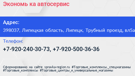 Экономь-ка, автосервис по адресу 398037, Липецкая область, Липецк, Трубный проезд, вл5а в дальнейшем Организация, размещена в следующих категориях: