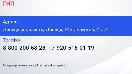 ГНП по адресу Липецкая область, Липецк, Металлургов, 2 ст1 в дальнейшем Организация, размещена в следующих категориях: