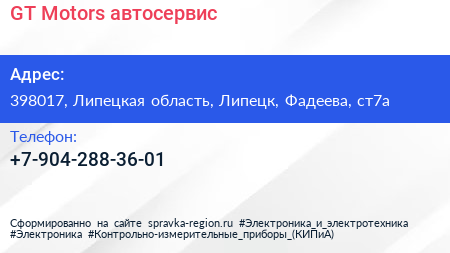 GT Motors, автосервис по адресу 398017, Липецкая область, Липецк, Фадеева, ст7а в дальнейшем Организация, размещена в следующих категориях: