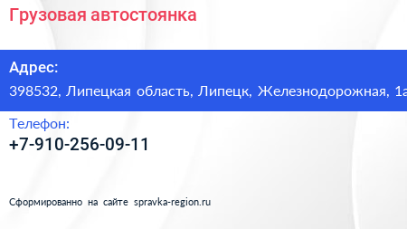 Грузовая автостоянка по адресу 398532, Липецкая область, Липецк, Железнодорожная, 1а в дальнейшем Организация, размещена в следующих категориях: