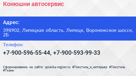 Конюшни, автосервис по адресу 398902, Липецкая область, Липецк, Воронежское шоссе, 2Б в дальнейшем Организация, размещена в следующих категориях: