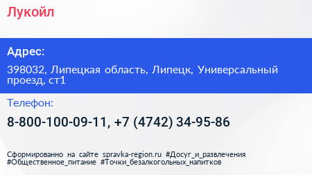 Лукойл по адресу 398032, Липецкая область, Липецк, Универсальный проезд, ст1 в дальнейшем Организация, размещена в следующих категориях: