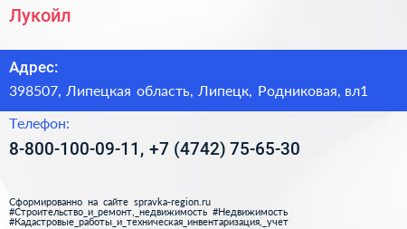 Лукойл по адресу 398507, Липецкая область, Липецк, Родниковая, вл1 в дальнейшем Организация, размещена в следующих категориях: