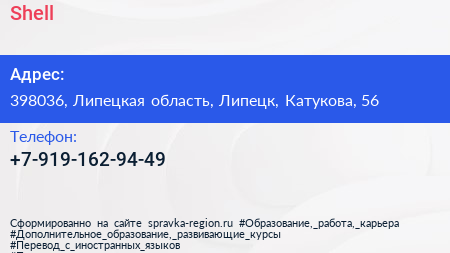 Shell по адресу 398036, Липецкая область, Липецк, Катукова, 56 в дальнейшем Организация, размещена в следующих категориях: