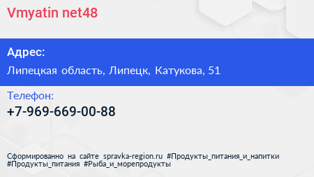 Vmyatin.net48 по адресу Липецкая область, Липецк, Катукова, 51 в дальнейшем Организация, размещена в следующих категориях: