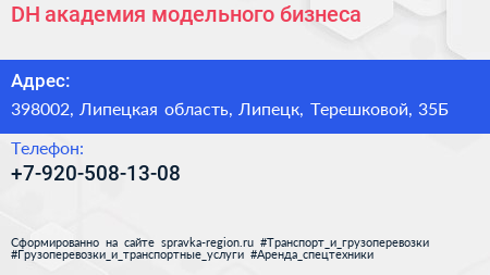 DH, академия модельного бизнеса по адресу 398002, Липецкая область, Липецк, Терешковой, 35Б в дальнейшем Организация, размещена в следующих категориях: