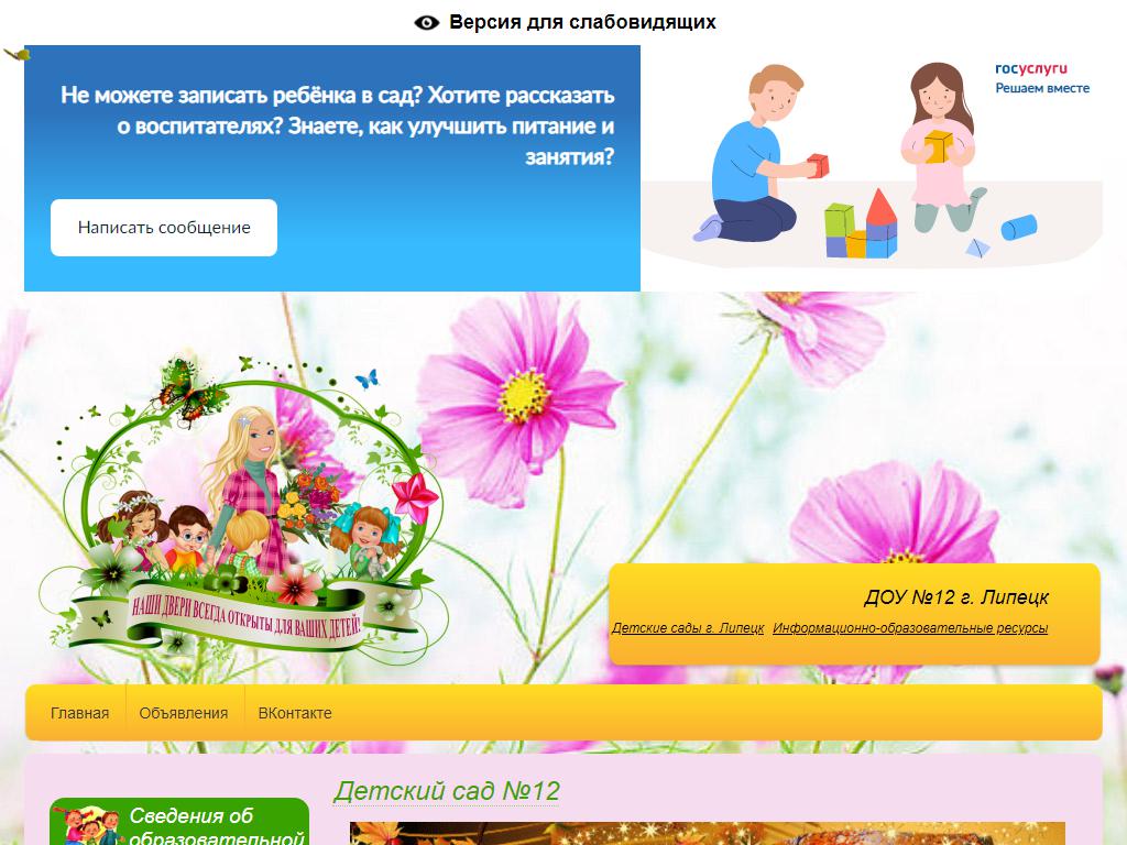 Детский сад №12 по адресу 398029, Липецкая область, Липецк, Центральная, 21 ст1 в дальнейшем Организация, размещена в следующих категориях:
