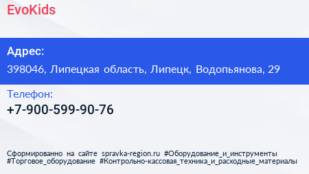 EvoKids по адресу 398046, Липецкая область, Липецк, Водопьянова, 29 в дальнейшем Организация, размещена в следующих категориях: