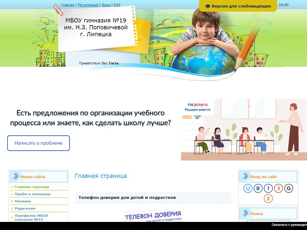 Гимназия №19 им. Н.З. Поповичевой по адресу 398002, Липецкая область, Липецк, Семашко, 68 в дальнейшем Организация, размещена в следующих категориях: