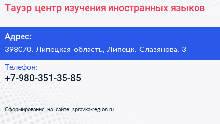 Тауэр, центр изучения иностранных языков по адресу 398070, Липецкая область, Липецк, Славянова, 3 в дальнейшем Организация, размещена в следующих категориях: