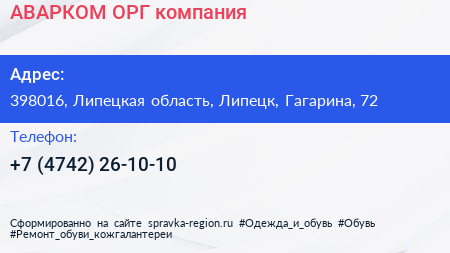 АВАРКОМ.ОРГ, компания по адресу 398016, Липецкая область, Липецк, Гагарина, 72 в дальнейшем Организация, размещена в следующих категориях: