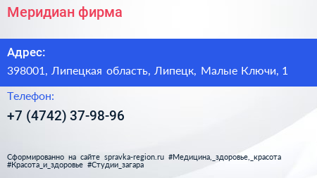 Меридиан, фирма по адресу 398001, Липецкая область, Липецк, Малые Ключи, 1 в дальнейшем Организация, размещена в следующих категориях: