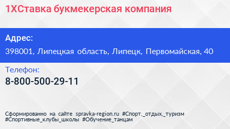 1XСтавка, букмекерская компания по адресу 398001, Липецкая область, Липецк, Первомайская, 40 в дальнейшем Организация, размещена в следующих категориях:
