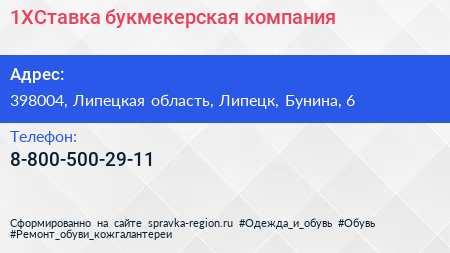 1XСтавка, букмекерская компания по адресу 398004, Липецкая область, Липецк, Бунина, 6 в дальнейшем Организация, размещена в следующих категориях: