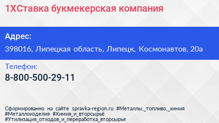 1XСтавка, букмекерская компания по адресу 398016, Липецкая область, Липецк, Космонавтов, 20а в дальнейшем Организация, размещена в следующих категориях: