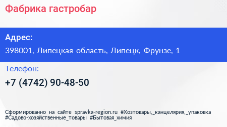 Фабрика, гастробар по адресу 398001, Липецкая область, Липецк, Фрунзе, 1 в дальнейшем Организация, размещена в следующих категориях:
