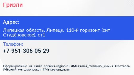 Гризли по адресу Липецкая область, Липецк, 110-й горизонт (снт Студёновское), ст1 в дальнейшем Организация, размещена в следующих категориях: