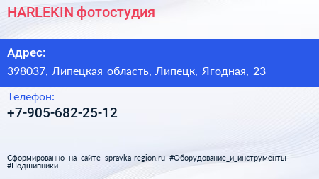 HARLEKIN, фотостудия по адресу 398037, Липецкая область, Липецк, Ягодная, 23 в дальнейшем Организация, размещена в следующих категориях: